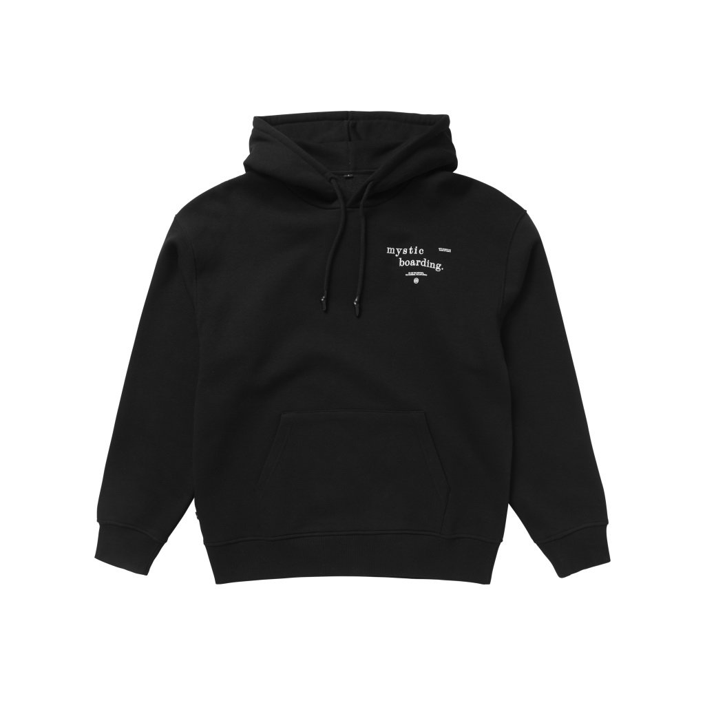Mystic Adrift Hood Sweat je pořádná, teplejší mikina s decentním Mystic logem na hrudi, velkou kapucí a kapsou klokankou, bez zipu, přetahovací přes havu.