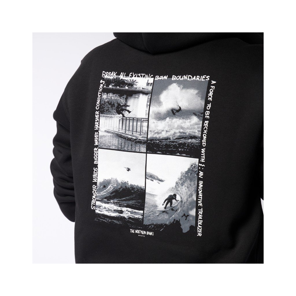 Mystic Bounty Hood Sweat je pořádná mikina s velkým Mystic logem na zádech, velkou kapucí a kapsou klokankou, bez zipu, přetahovací přes havu.