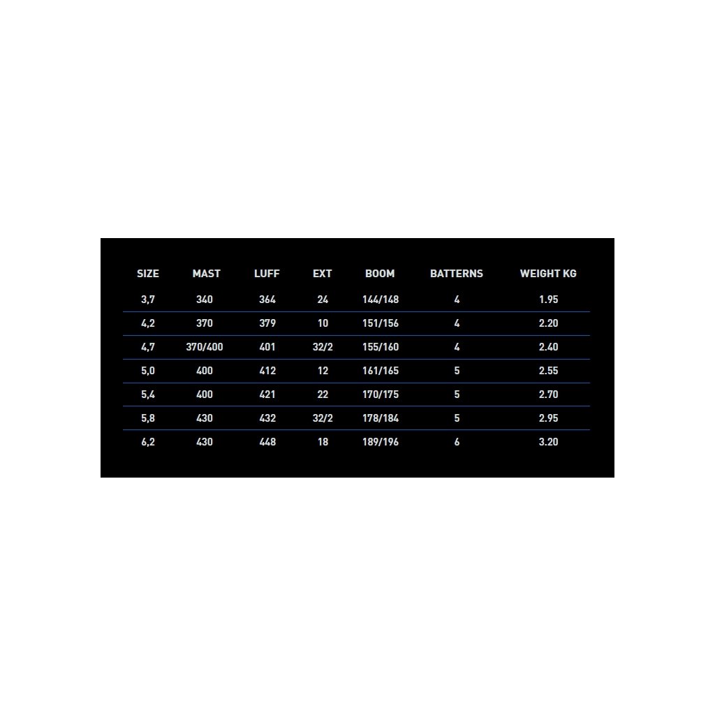 Plachty ve velikostech 6.7 a 7.4 jsou ideální pro jízdu na flatu a v menším chopu. Hravě dosáhnete vysoké rychlosti kterou udržíte celý šlák. Je velmi lehká v rukou, má obrovský větrný rozsah a snadnou stoupá proti větru.