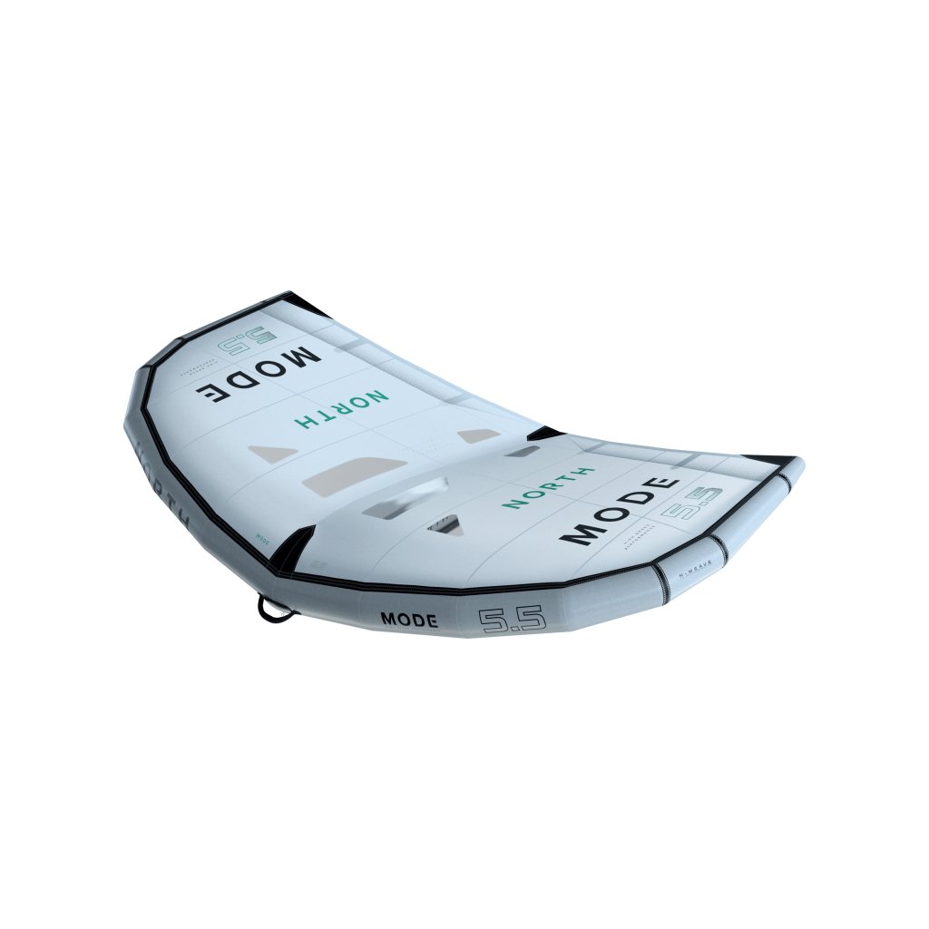 Křídlo Mode 5,5m - Velmi lehké a obratné křídlo, na svou velikost generuje obrovský tah vpřed, skvěle stoupá proti větru. Nový pevný materiál na banu a spíře = velmi tuhá konstrukce. Je efektivní při pumpování ve slabém větru. Ovšem zvládá i přebušené podmínky. Má dva pevné lehké handly (žádná měkká poutka).