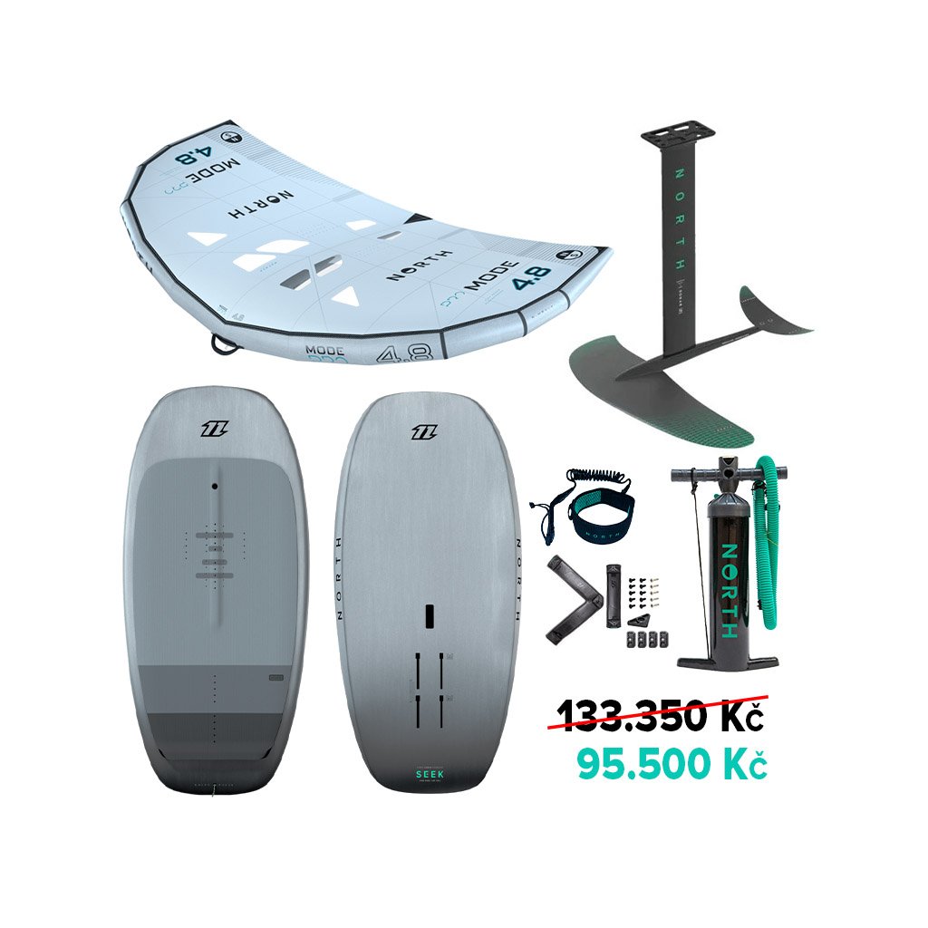 North Seek Foilboard 5’5”(165cm, 118 litrů) – Výtlačný board s prohnutou a zvednutou špičkou, která se nezaboří do vody, když se dotknete hladiny. S konkávou na vrchní straně boardu a vyladěnou odtokovou hranou pro snadné odlepení z vody při slabém větru.
